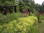 2005-06-26 暑い日 高原にいても日中は暑くかんじる。 昨日松本では6月としては明治に観測を始めて以来最高温度をきろくしました。 高温は山のガーデニングにとってはラッキイです。花付が例年になくよいようです。 アルケミリア(レデイースマントル)の花がさきはじめました。葉が婦人のマントのような形をしています。